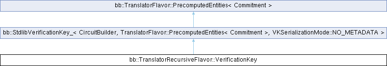 Public Types inherited from bb::StdlibVerificationKey_< CircuitBuilder, TranslatorFlavor::PrecomputedEntities< Commitment >, VKSerializationMode::NO_METADATA > | |