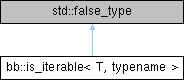 Inheritance diagram for bb::is_iterable< T, typename >: